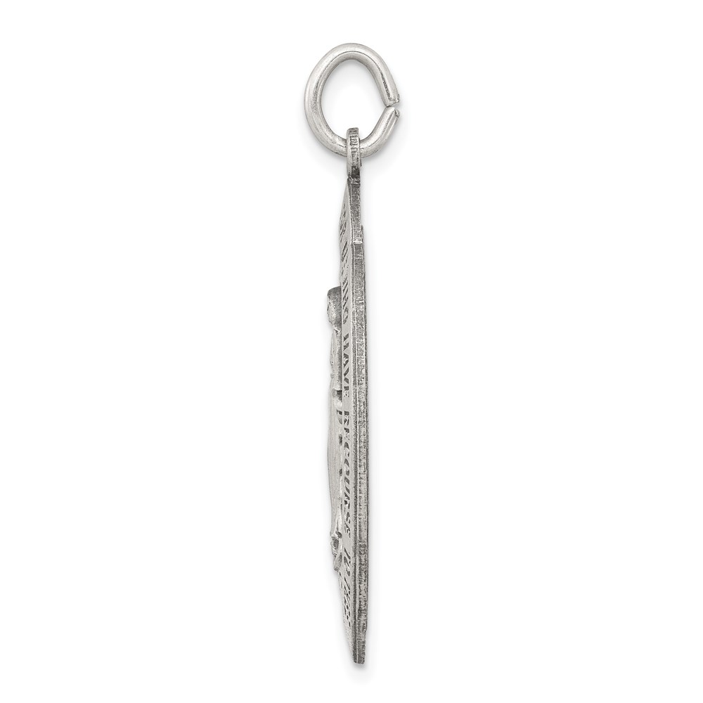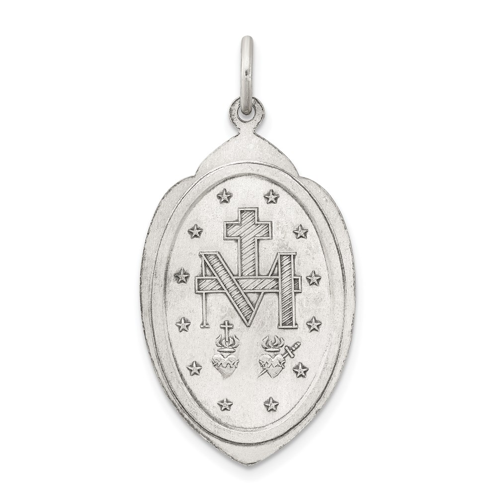 14k White Gold Polished and Satin Solid Miraculous Medal Round Pendant