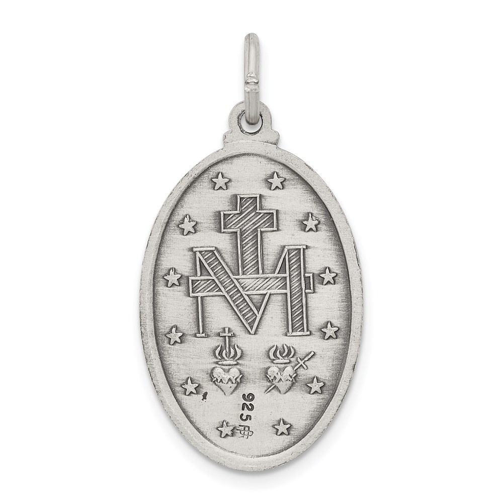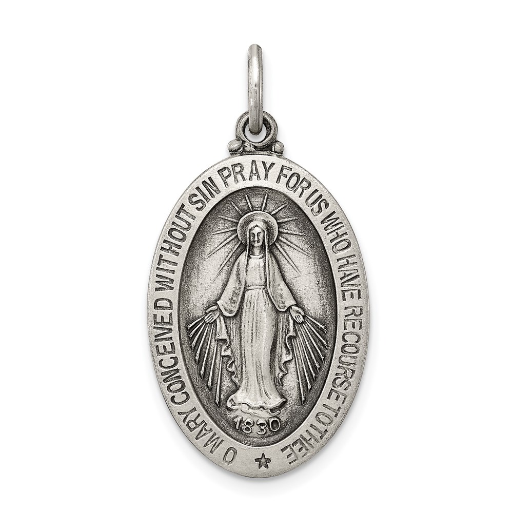 14k White Gold Polished and Satin Solid Miraculous Medal Round Pendant