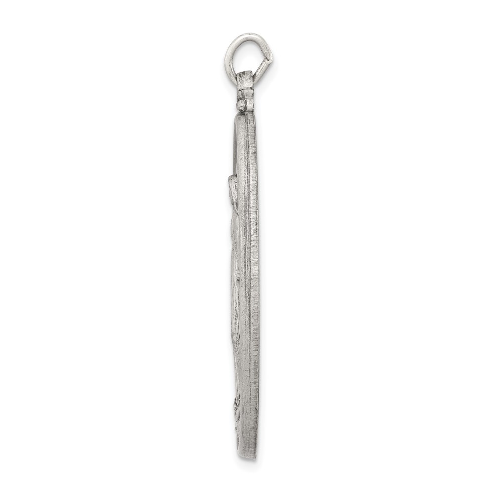 14k White Gold Polished and Satin Solid Miraculous Medal Round Pendant