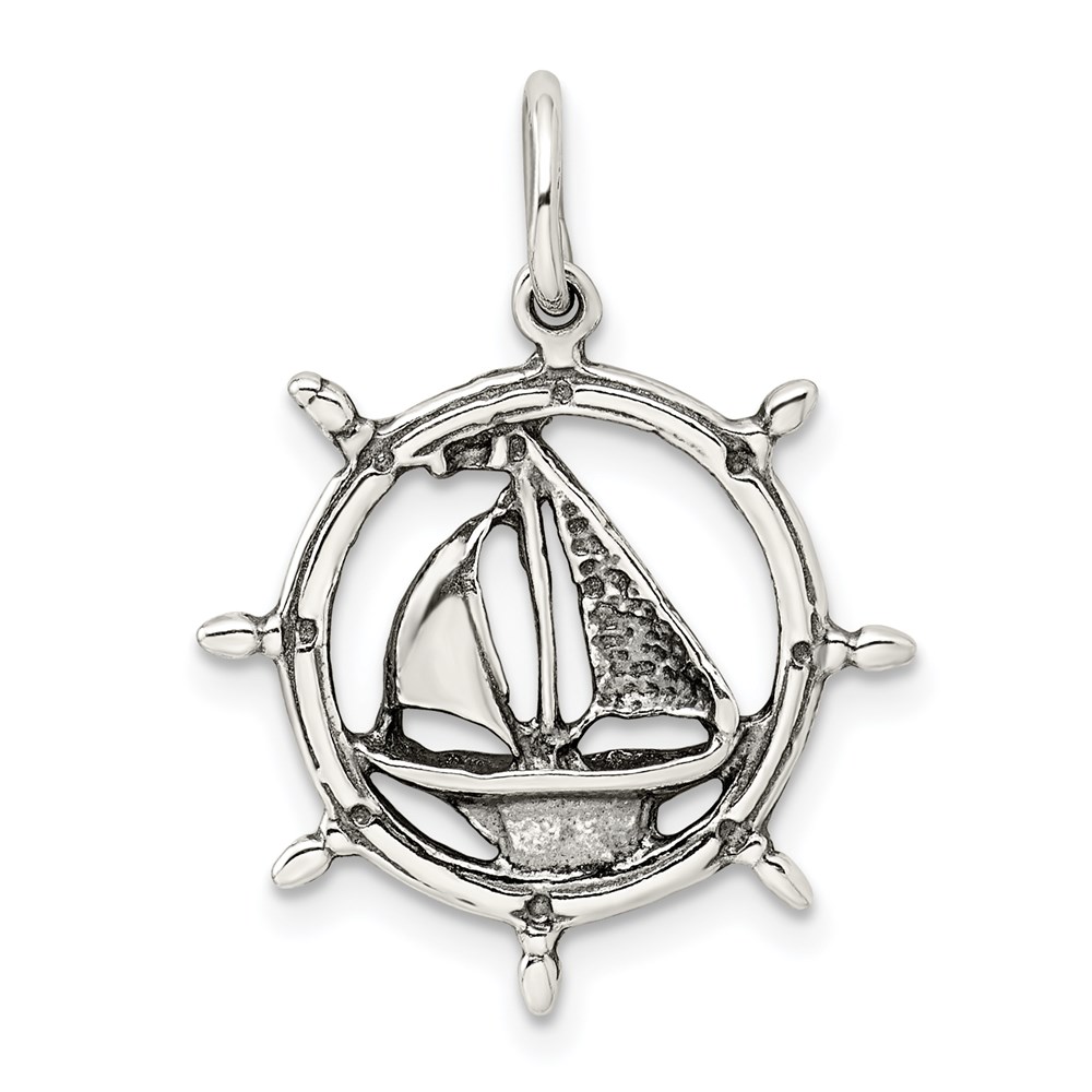 Sterling Silver Antiqued Sailboat in Wheel Charm