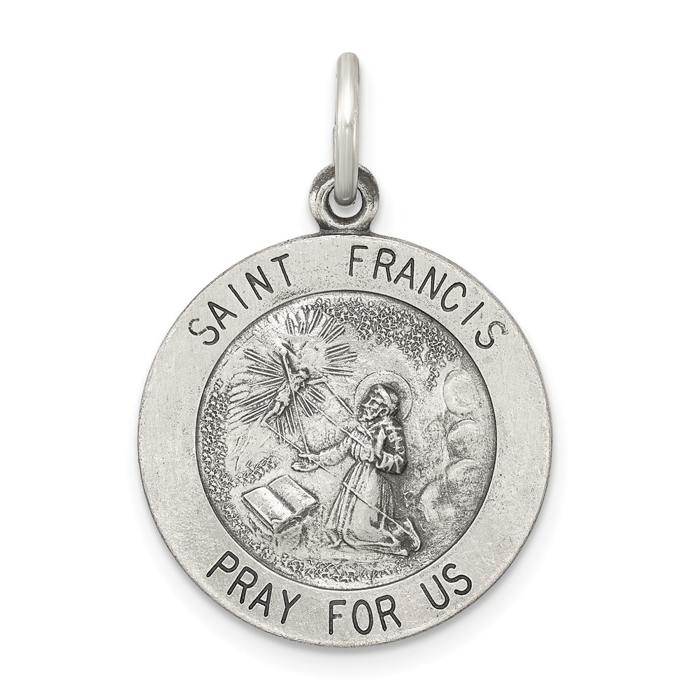 Sterling Silver Antiqued Saint Francis of Assisi Medal