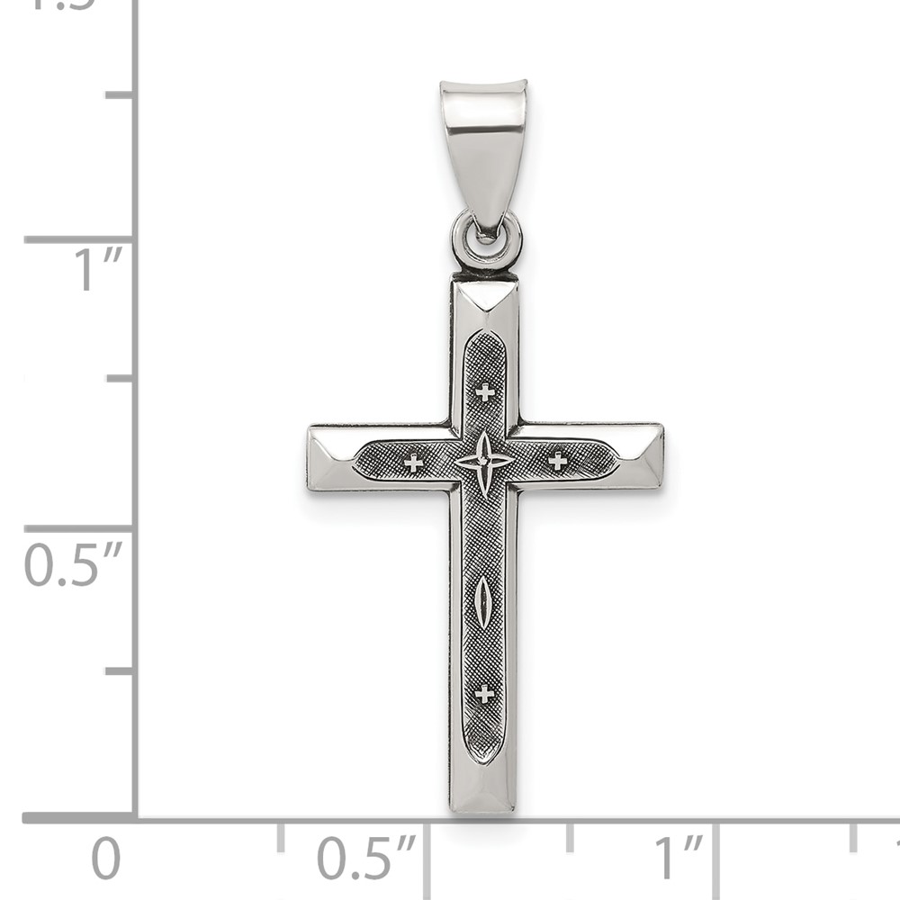 Sterling Silver Antiqued Solid Textured Cross Pendant