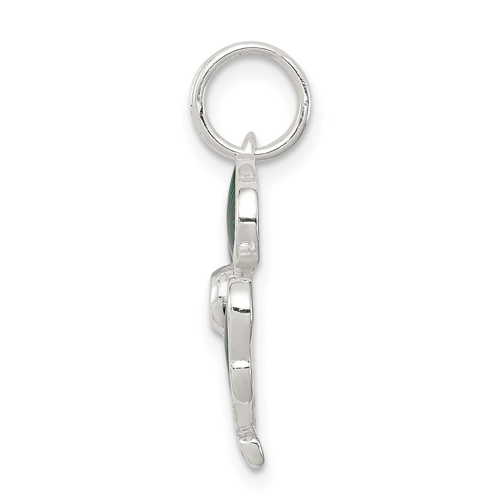 Sterling Silver Enameled 4-Leaf Clover with Green Glass Stone Charm