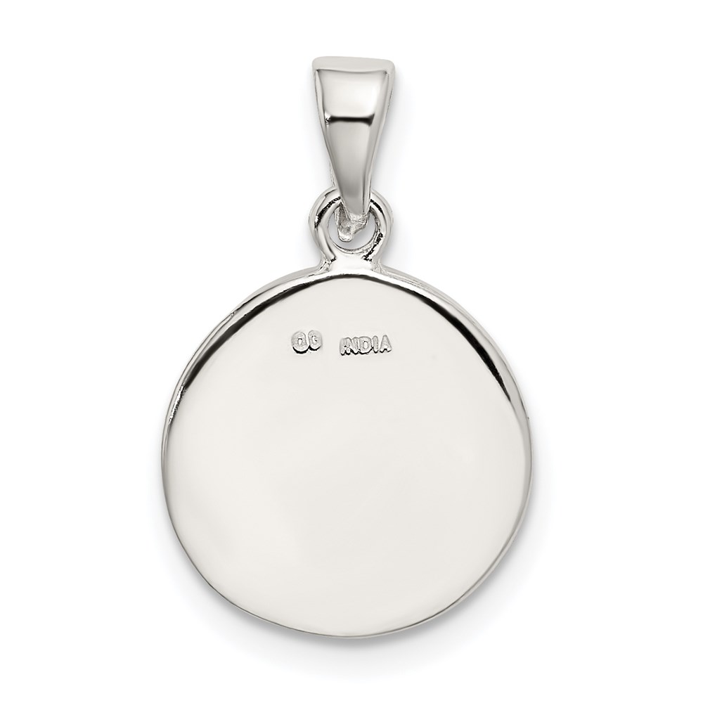 Sterling Silver Glitter Enamel Letter A Initial Circle Pendant