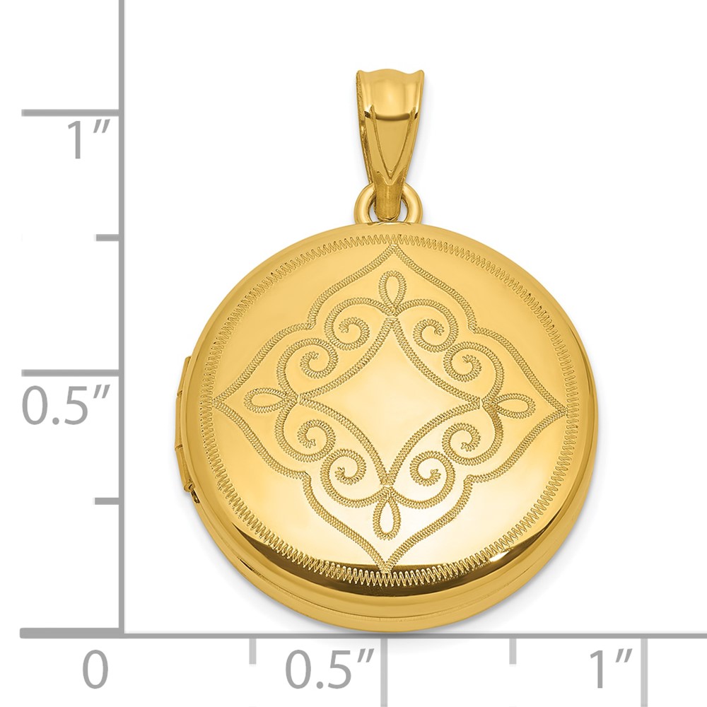 Sterling Silver Gold-plated Polished Front/Brushed Back Fancy Lace Design 20mm Round Locket