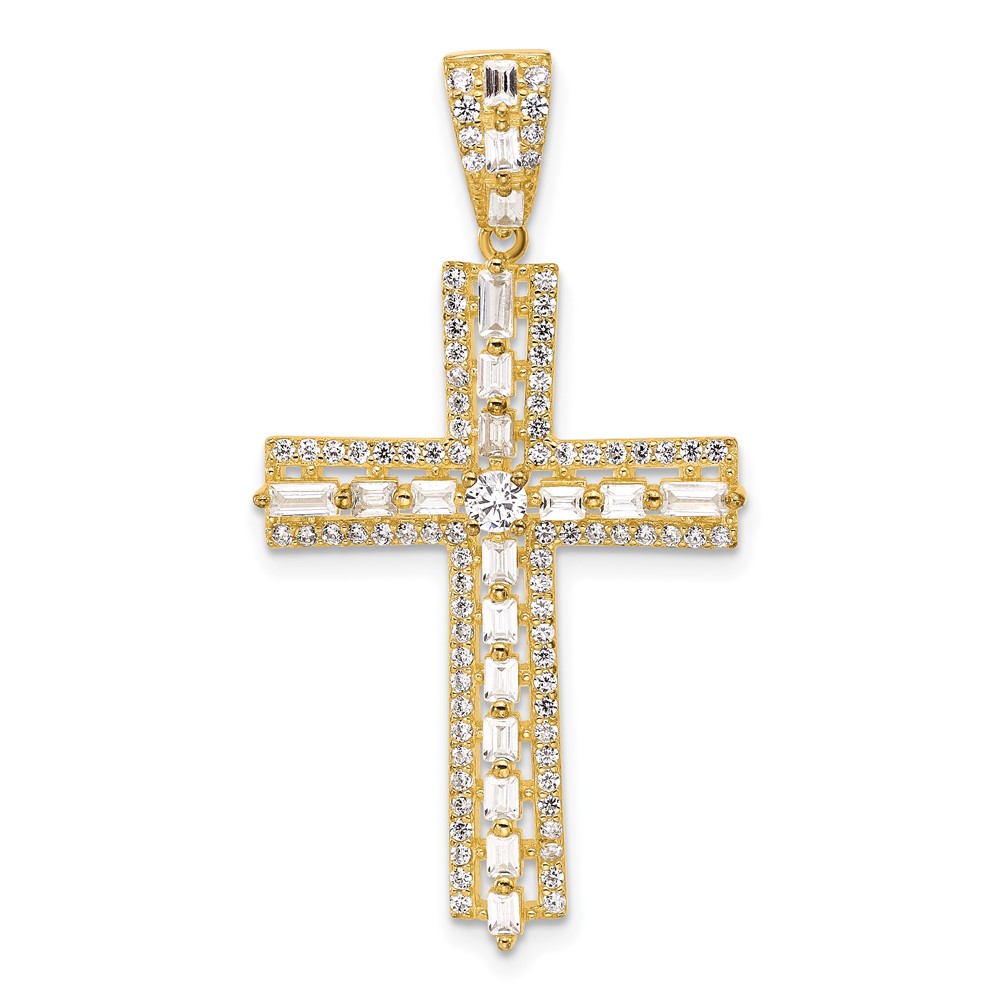 Sterling Silver Gold-tone CZ Latin Cross Pendant