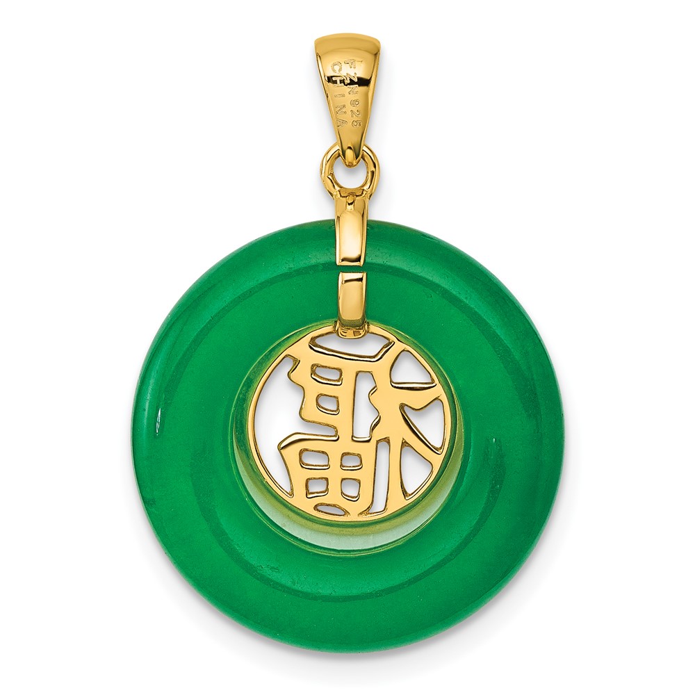 Sterling Silver Gold-tone Polished Good Luck Dangle Green Chalcedony Circle Pendant