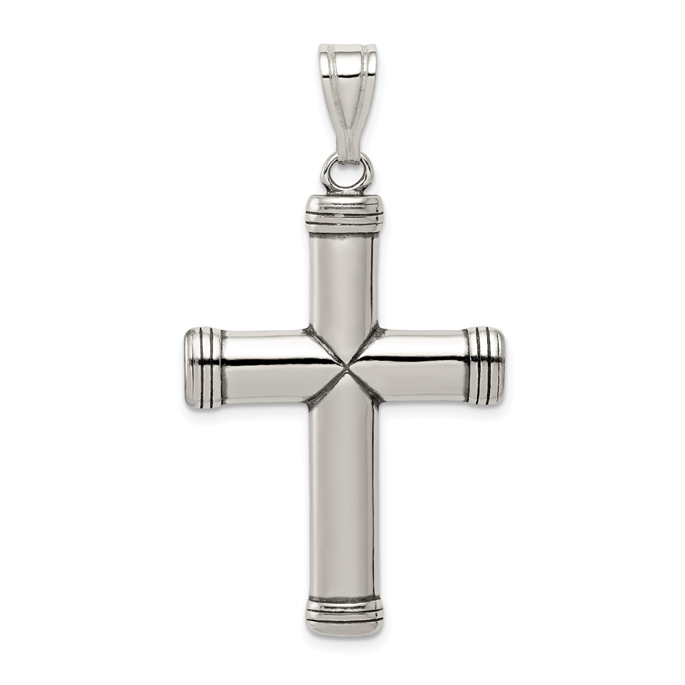 Sterling Silver Platinum-plated Enameled Cross Charm