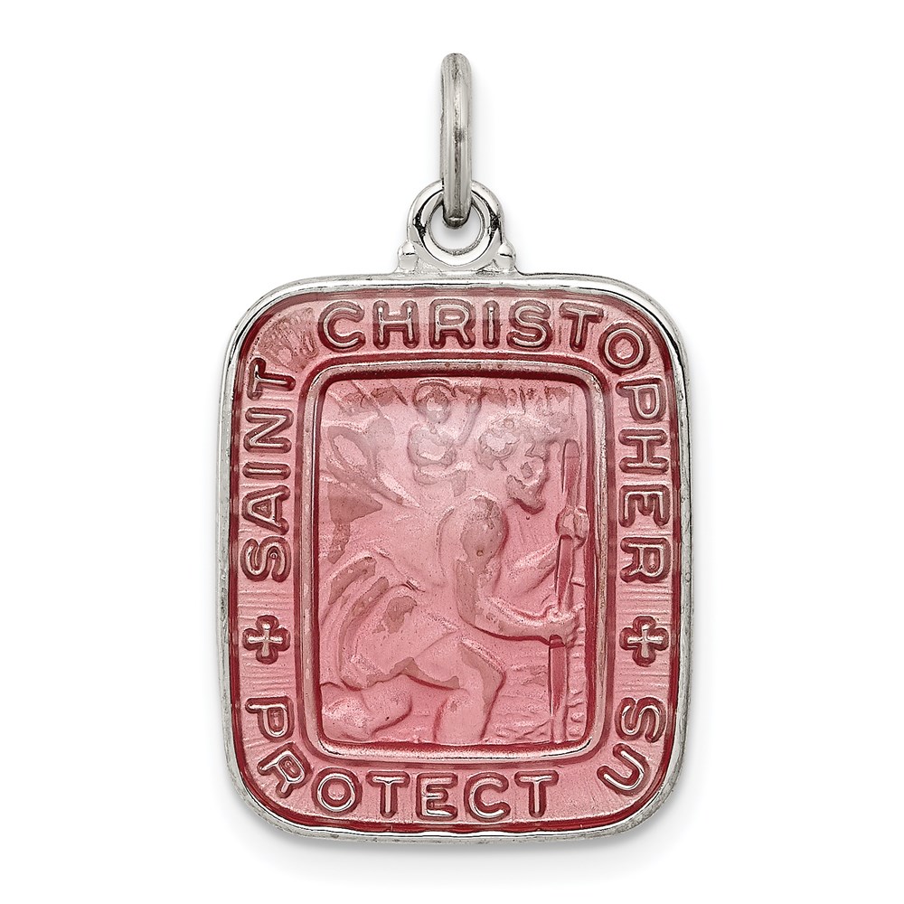 Sterling Silver Pink Enamel Square St. Christopher Medal Pendant
