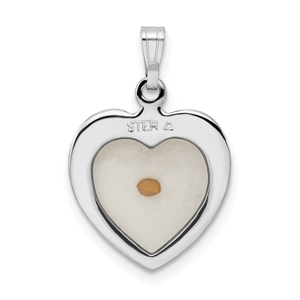 Sterling Silver Platinum-plated Large Heart with Mustard Seed Pendant