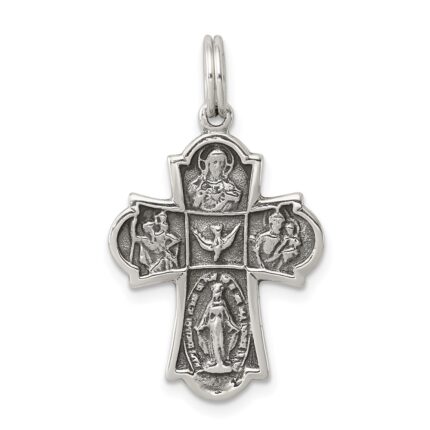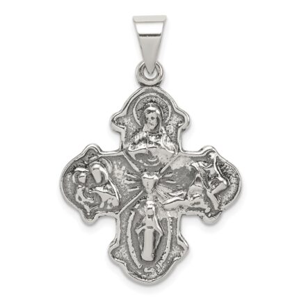 Sterling Silver Platinum-plated Satin 4-way Medal
