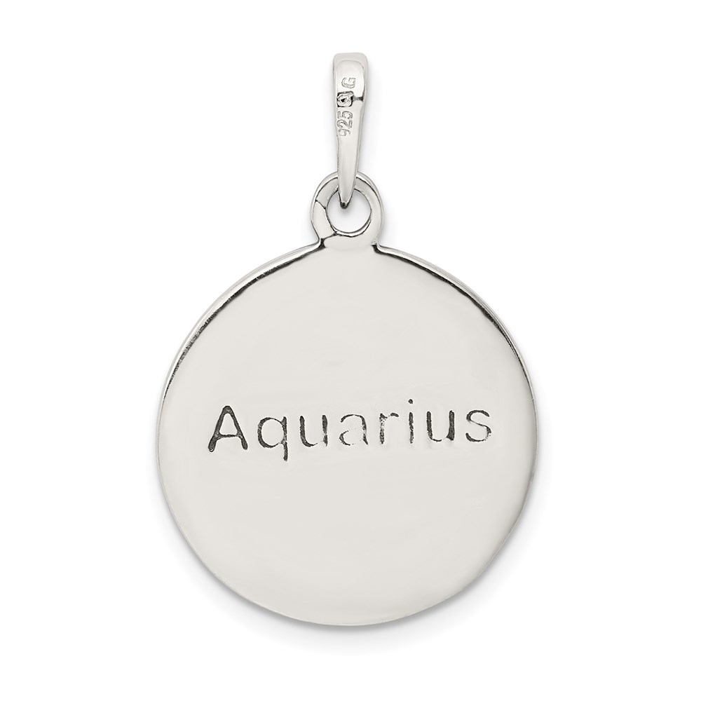 Sterling Silver Polished Antique Finish Aquarius Horoscope Zodiac Pendant