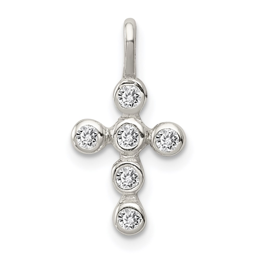 Sterling Silver Polished CZ Cross Pendant