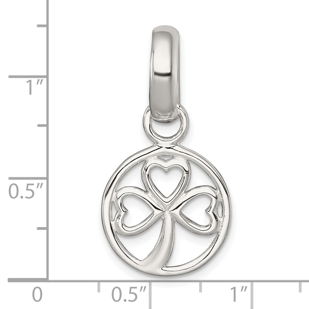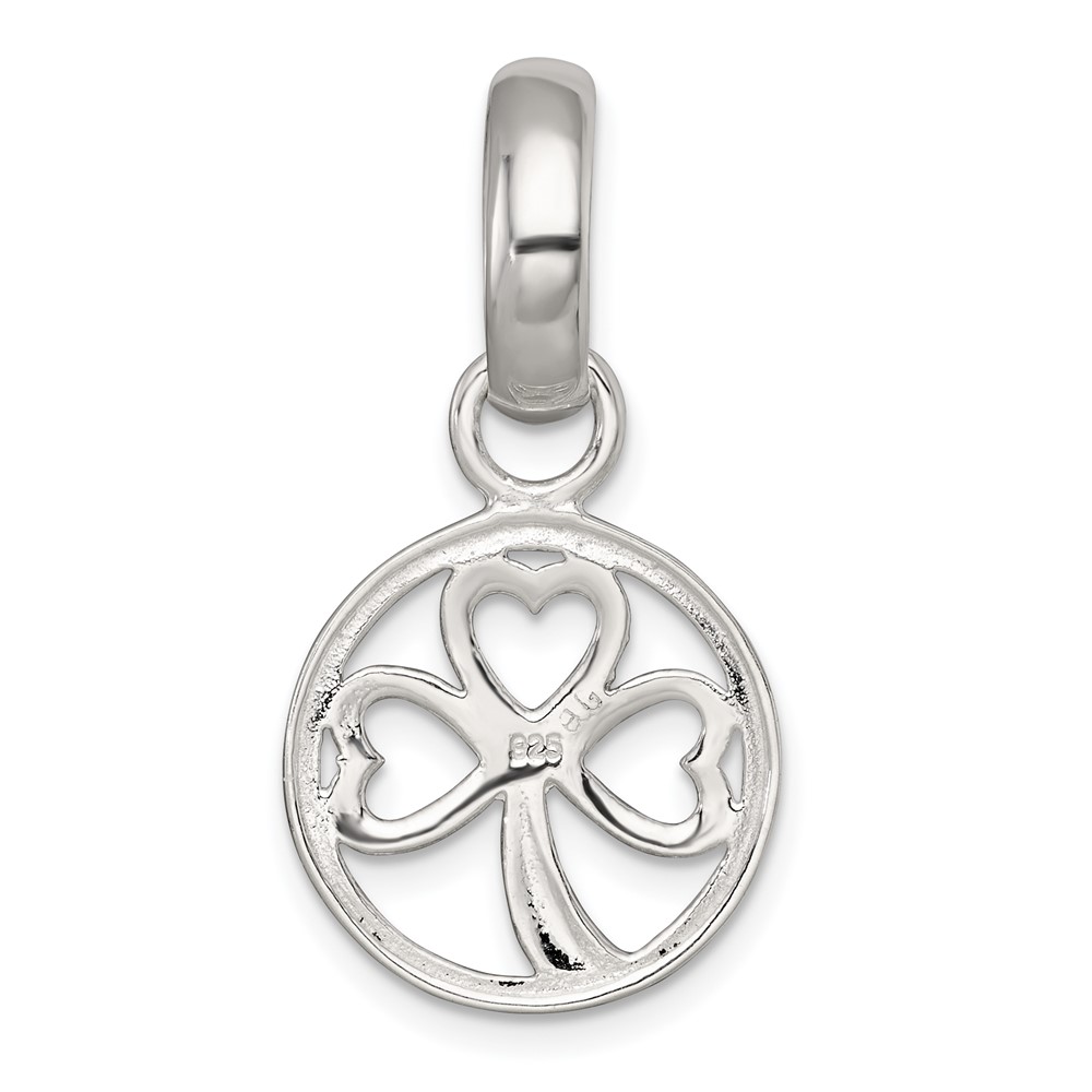 Sterling Silver Polished Cut-out 3-leaf Clover in Circle Pendant