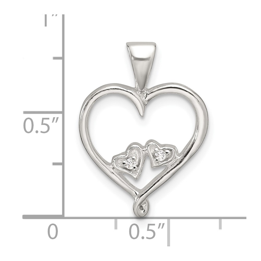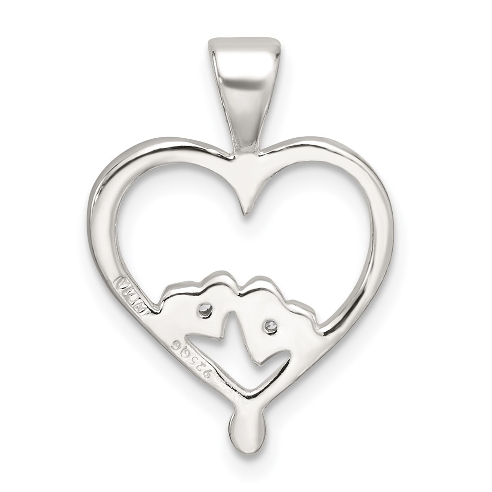 Sterling Silver Polished CZ Open Heart Pendant