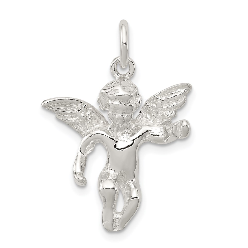 Sterling Silver Polished Full Angel Figure 3-D Pendant