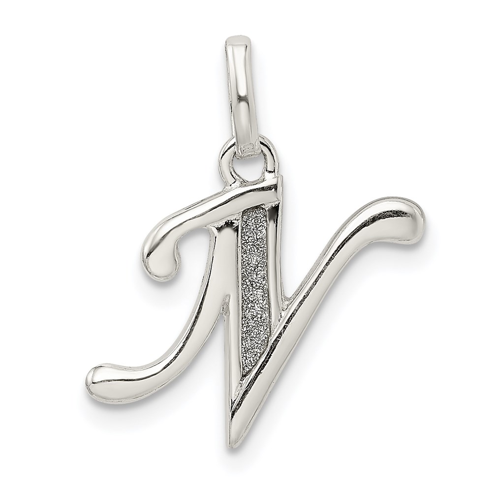 Sterling Silver Polished Glitter Enamel Letter N Initial Charm