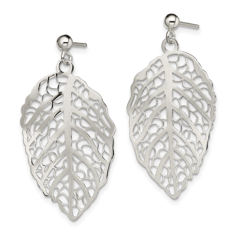 Sterling Silver Polished Leaf Post Dangle Earrings