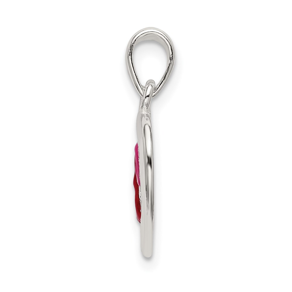 Sterling Silver Polished Red and Pink Enameled Hearts Pendant