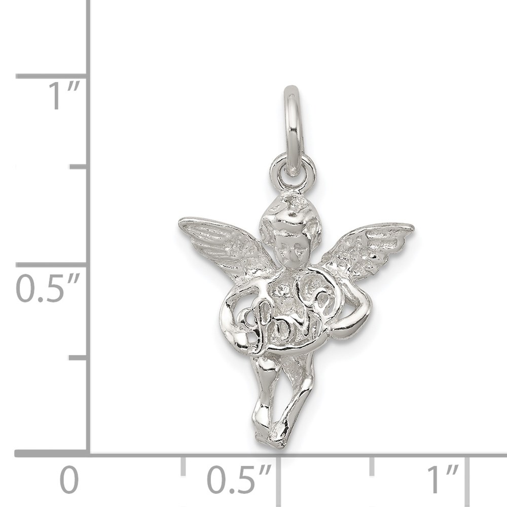 Sterling Silver Polished & Textured Angel Love Pendant