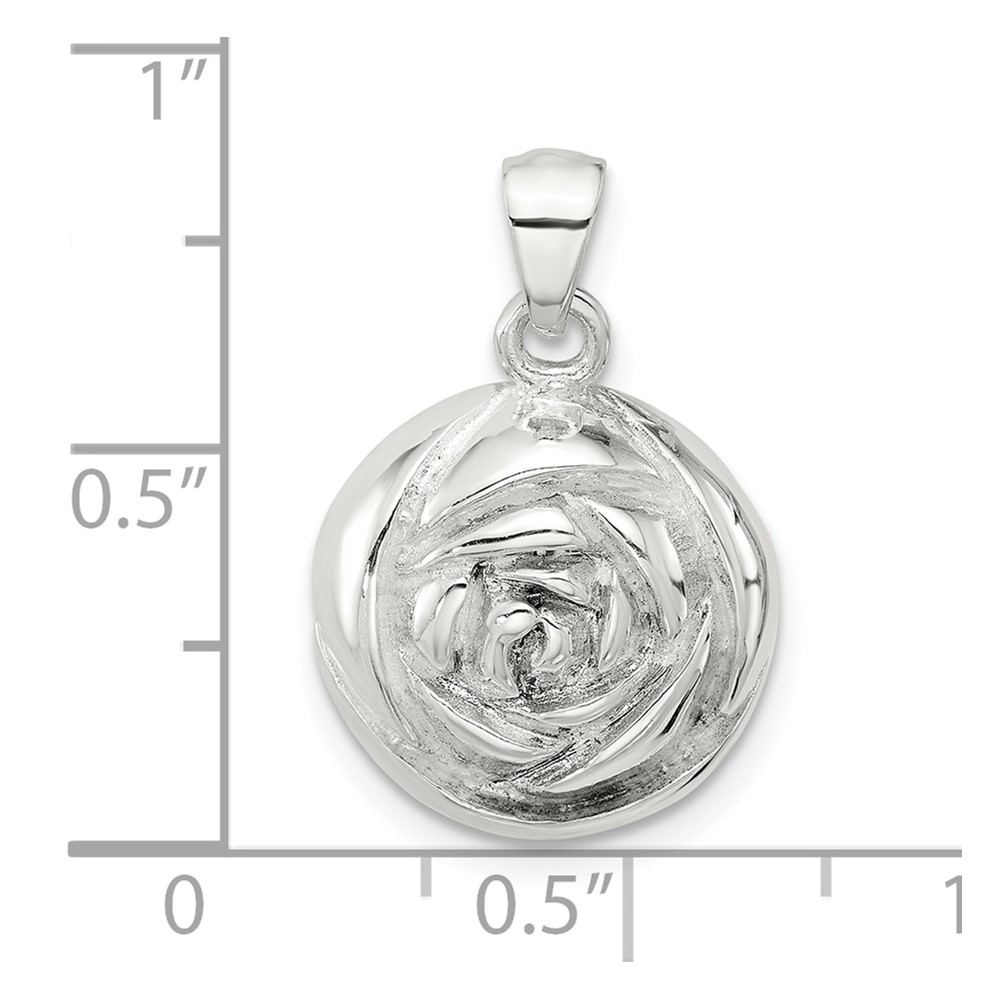 Sterling Silver Polished Textured Domed Flower Pendant