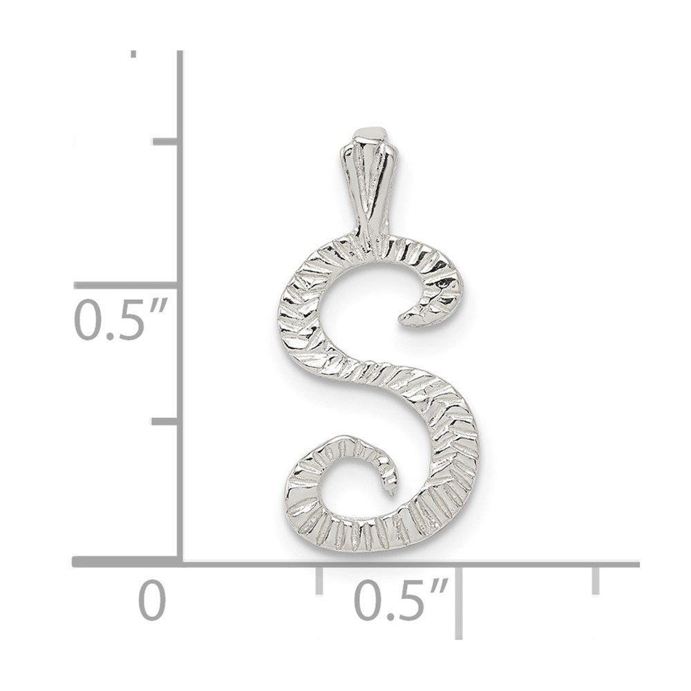 Sterling Silver Polished & Textured Letter S Initial Chain Slide