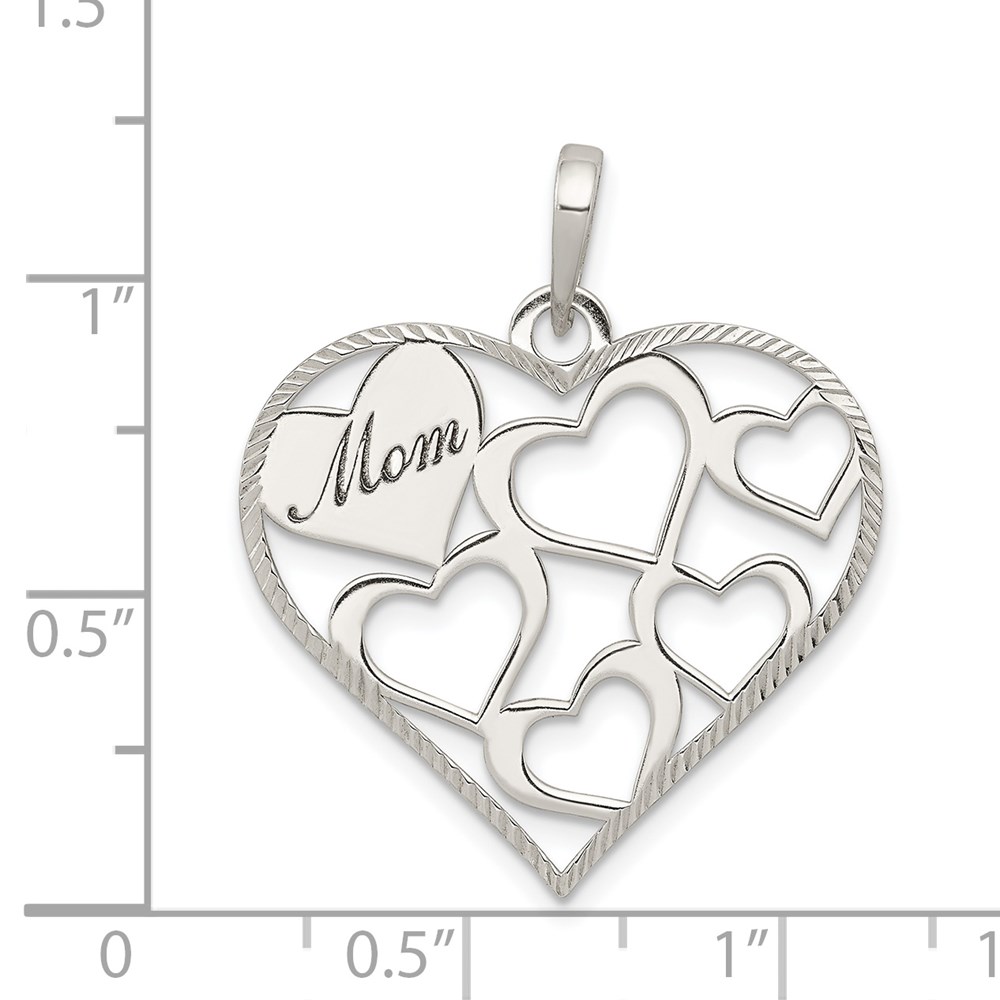 Sterling Silver Polished & Textured ‘Mom’ Engraved Heart Pendant
