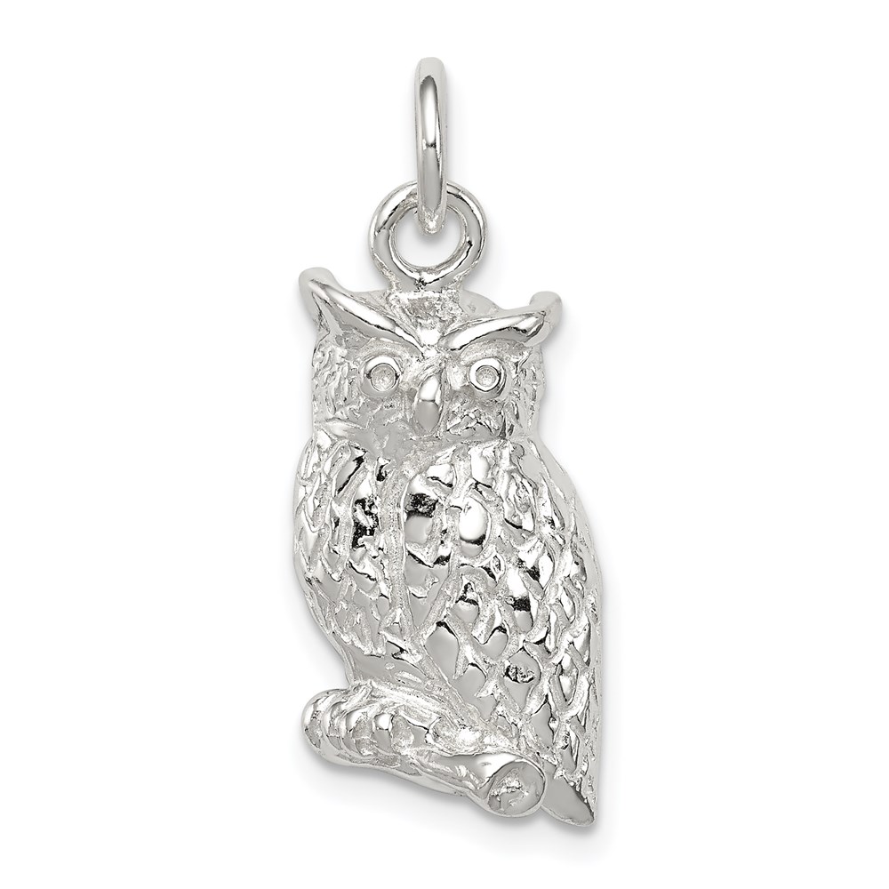 Sterling Silver Polished & Textured Perched Owl Pendant