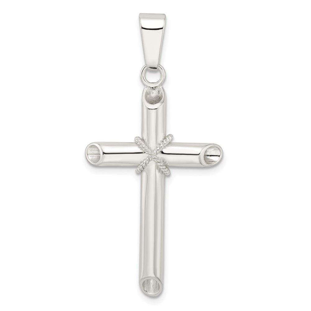 Sterling Silver Polished X Center Hollow Tube Cross Pendant