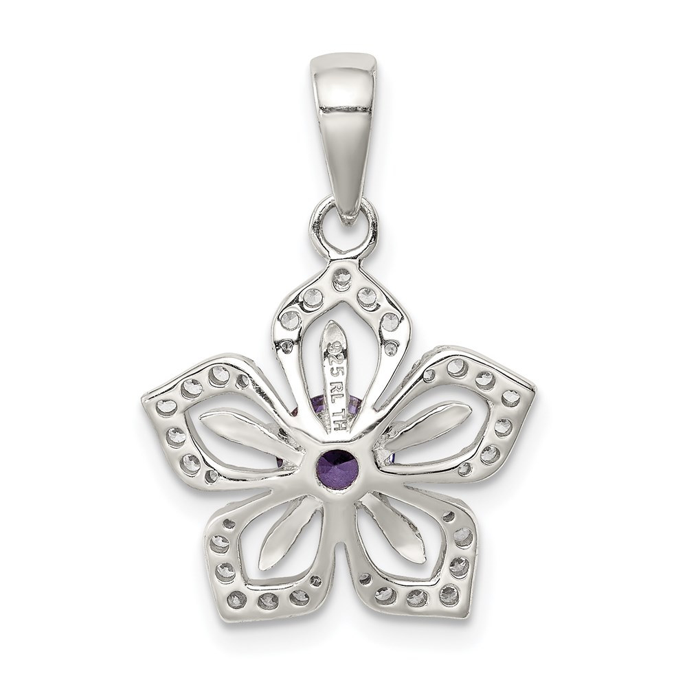 Sterling Silver Purple and Clear CZ Flower Pendant