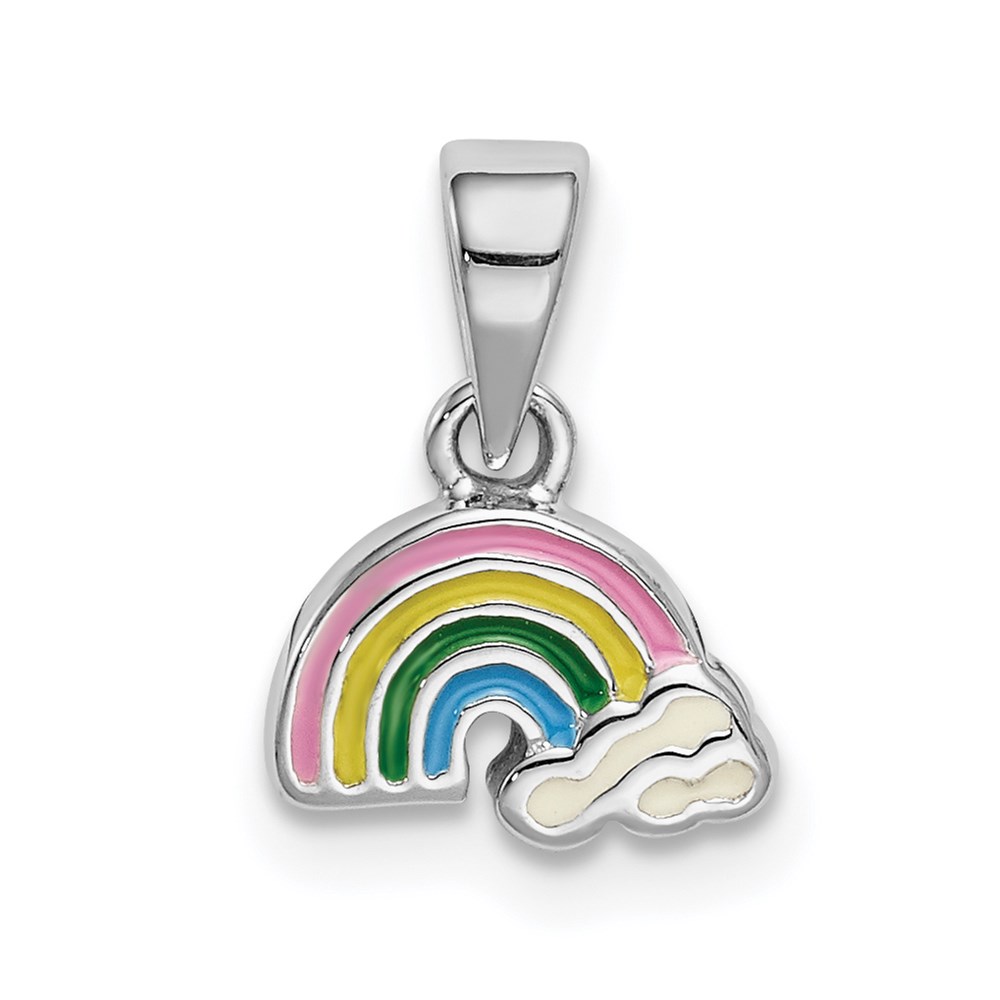 Sterling Silver RH-plated Polished & Enameled Rainbow Children’s Pendant