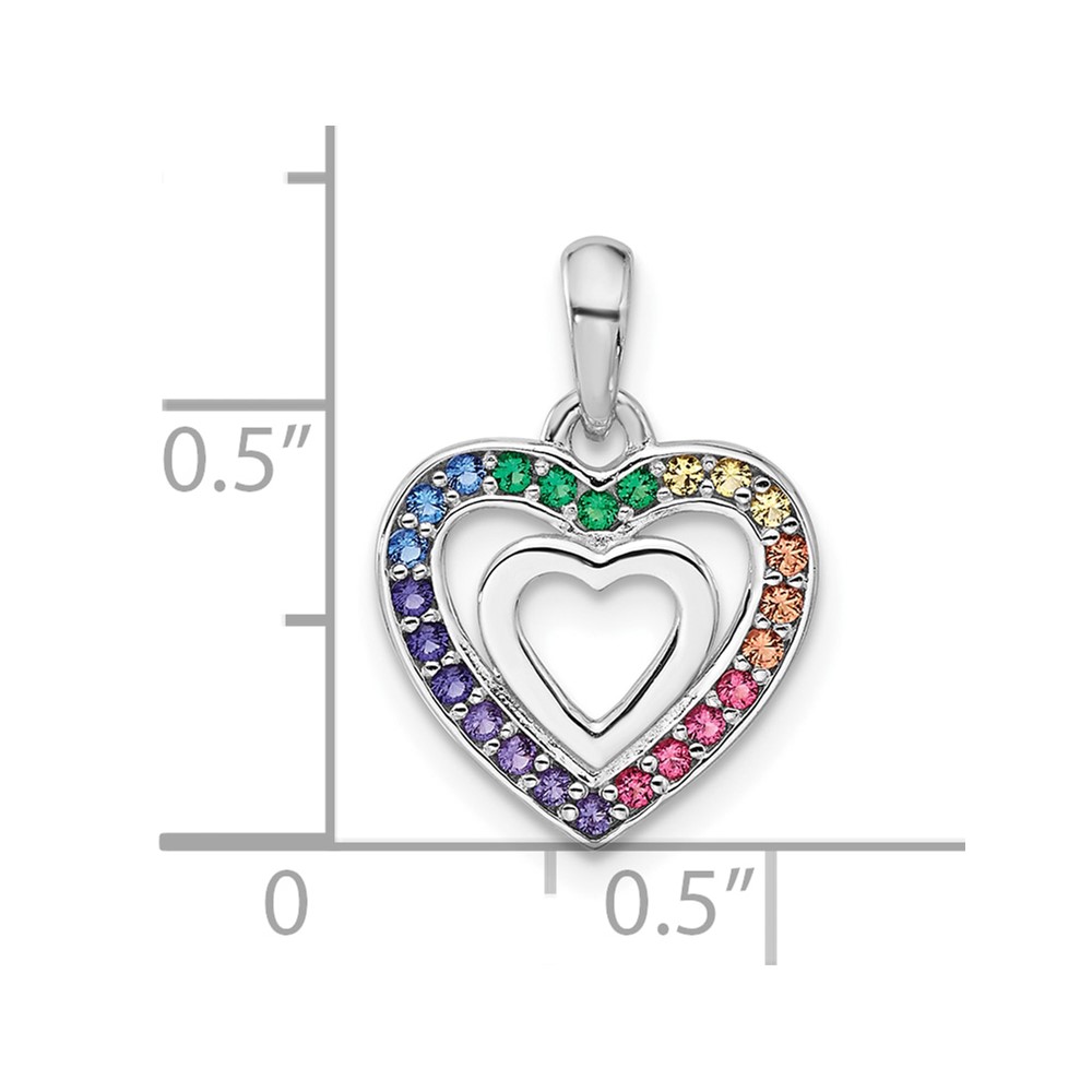Sterling Silver RH-plated Rainbow Crystal Double Heart Children’s Pendant