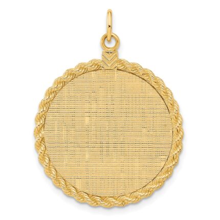 14k Plain .013 Gauge Round Engravable 22x17mm Disc with Rope Edge Charm
