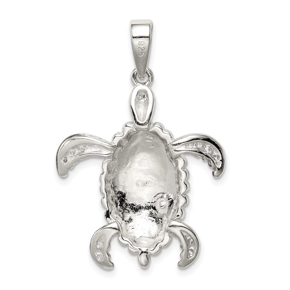 Sterling Silver Rhod-plated Created Blue Opal Inlay/CZ Tortoise Pendant