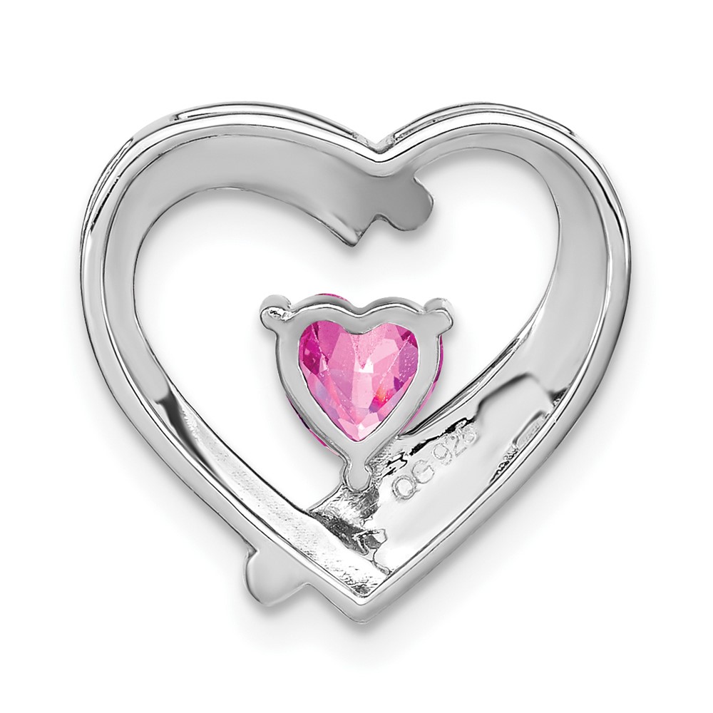 Sterling Silver Rhod-plated Created Pink Sapphire/Diamond Pendant
