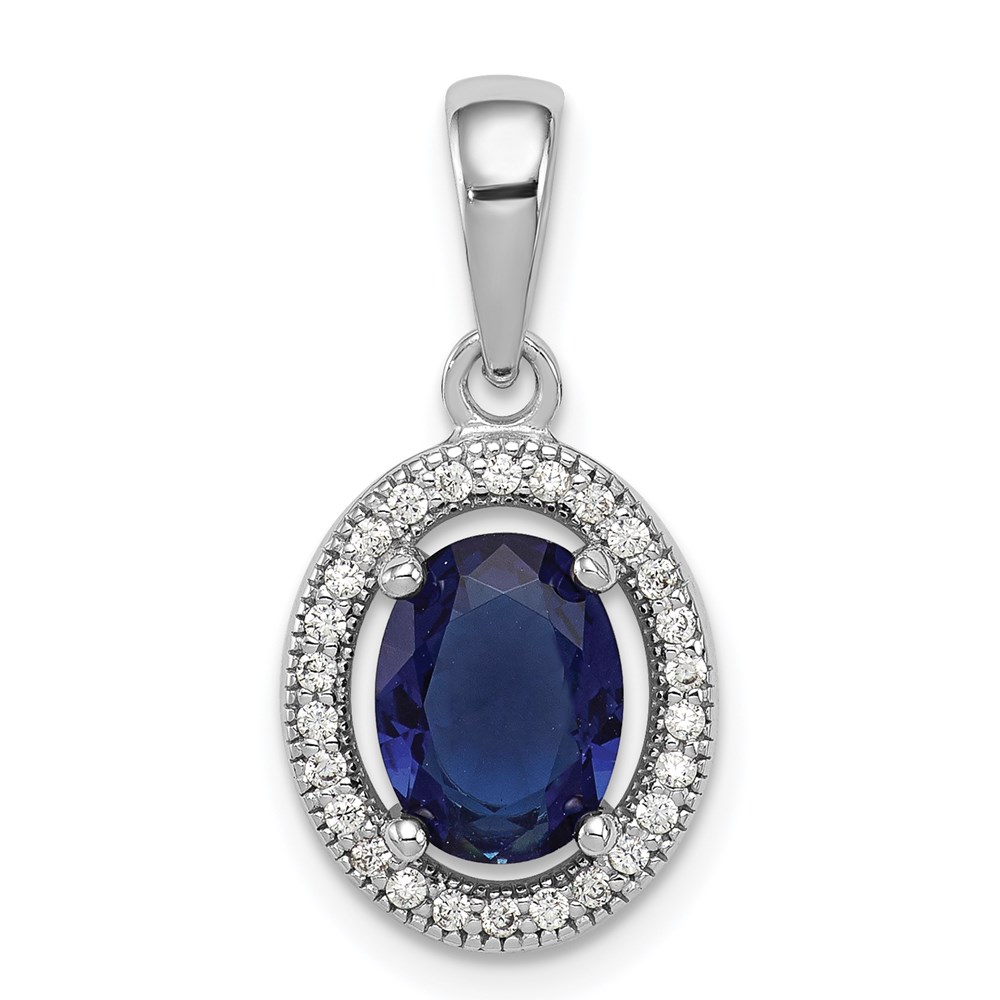 Sterling Silver Rhod-plated Dark Blue and White CZ Oval Pendant