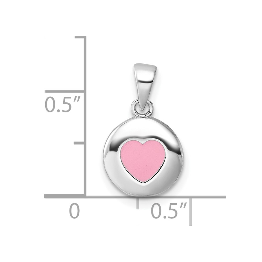 Sterling Silver Rhod-plated Polished Pink Enamel Heart Children’s Pendant