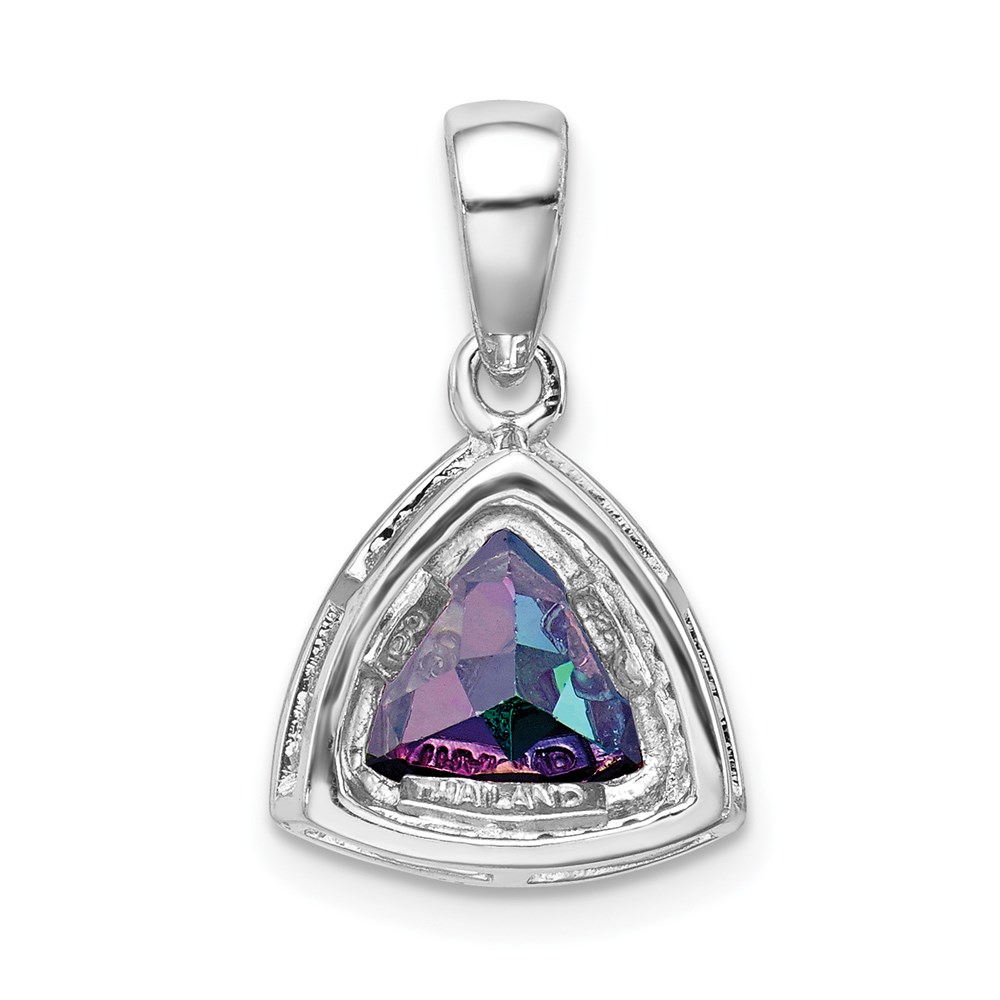 Sterling Silver Rhod-plated Trillion Mystic Fire/White Topaz Pendant