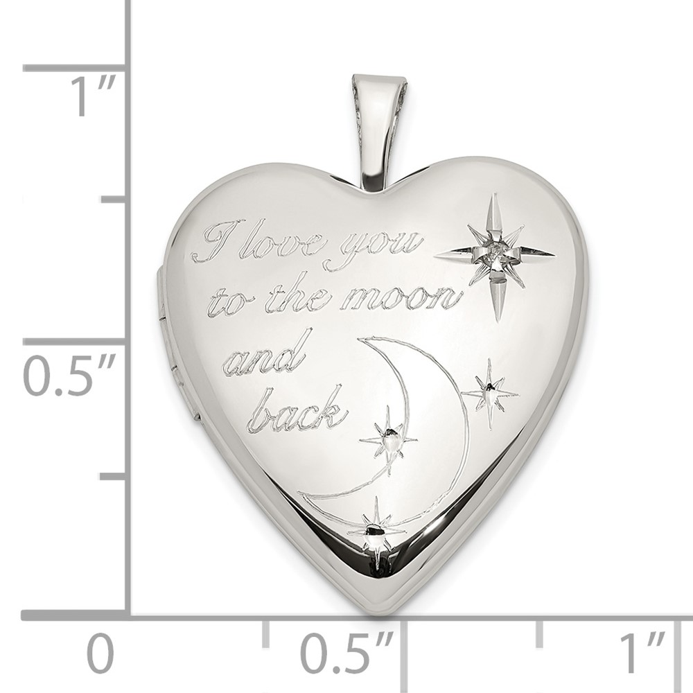 Sterling Silver Rhod-pltd 20mm LOVE TO THE MOON Diamond Heart Locket