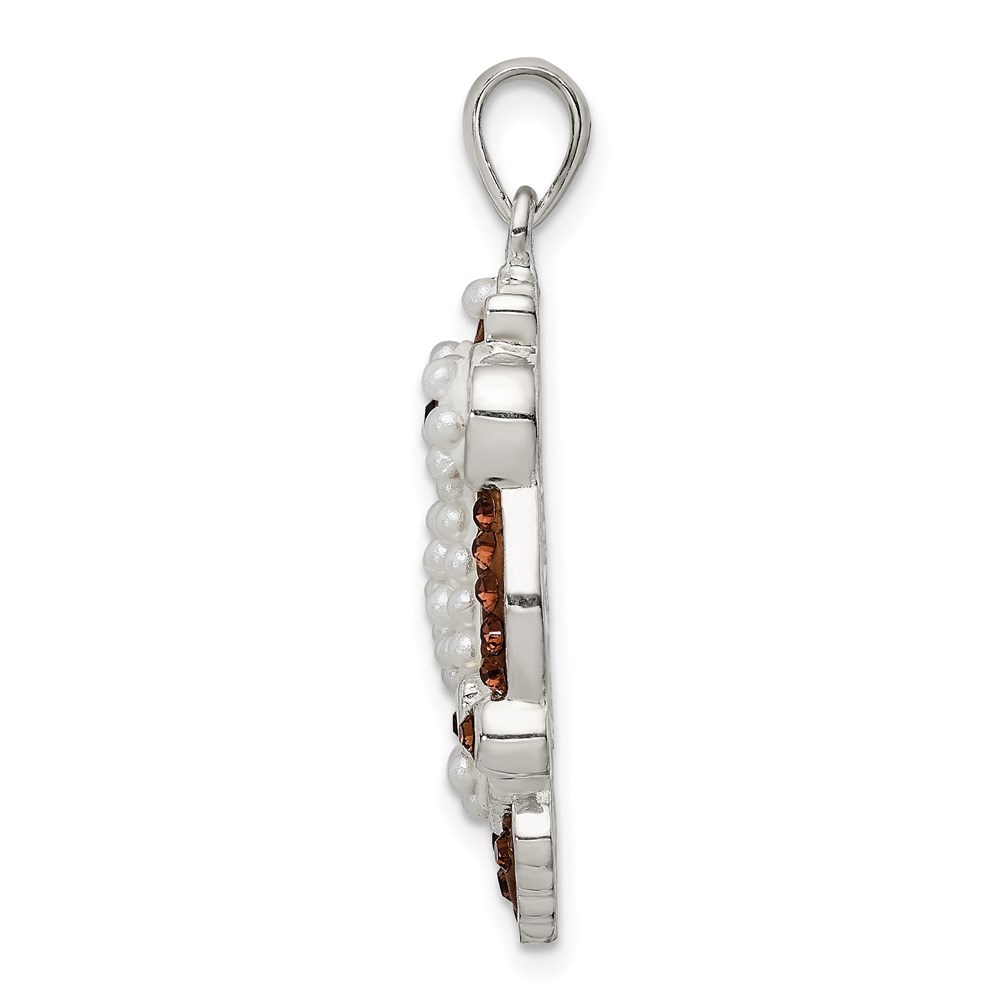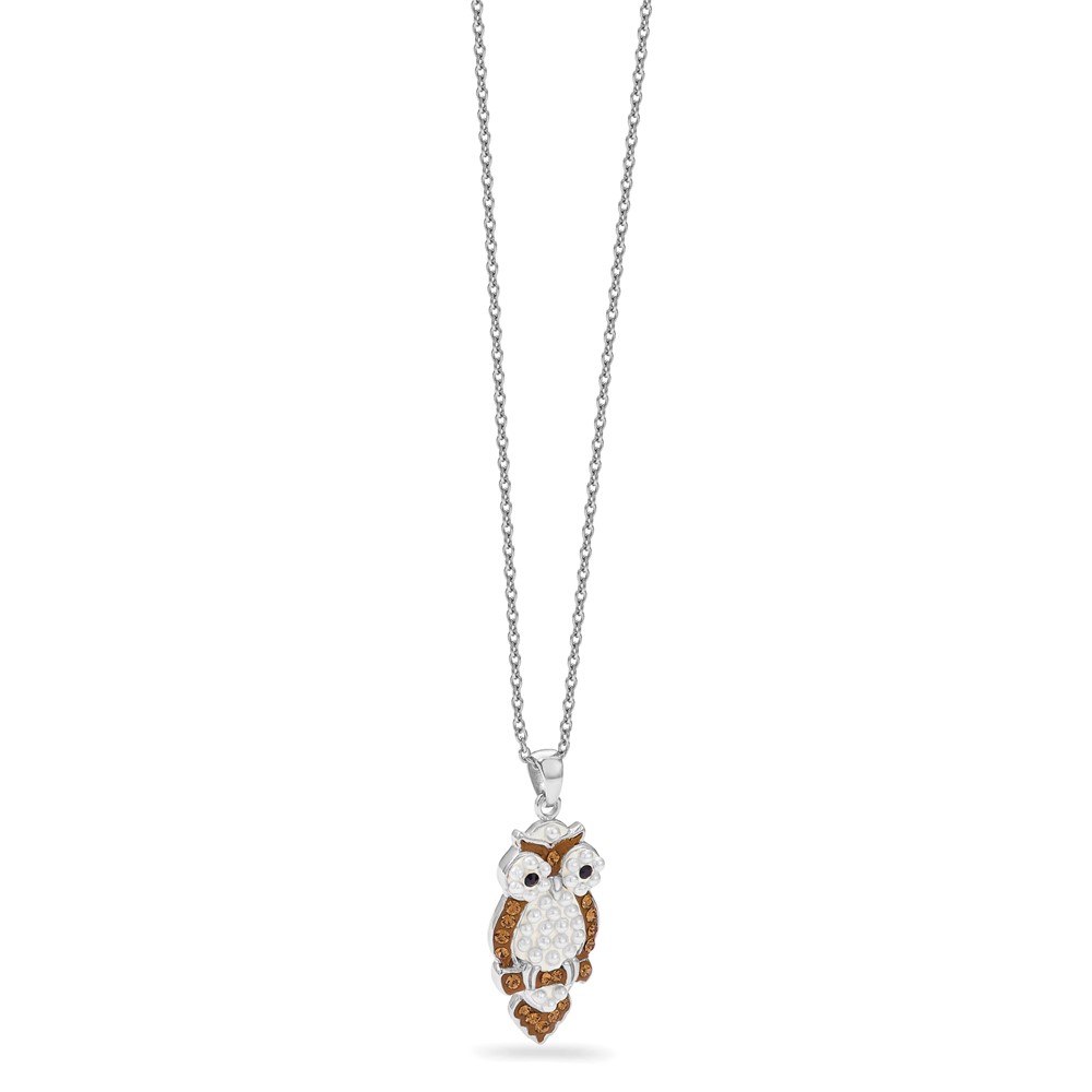 Sterling Silver Rhod-pltd Imitation Pearl/Preciosa Crystal Owl Pendant