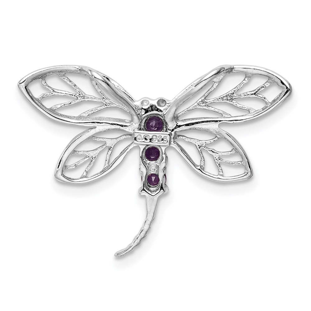 Sterling Silver Rhodium Amethyst Dragonfly Pendant