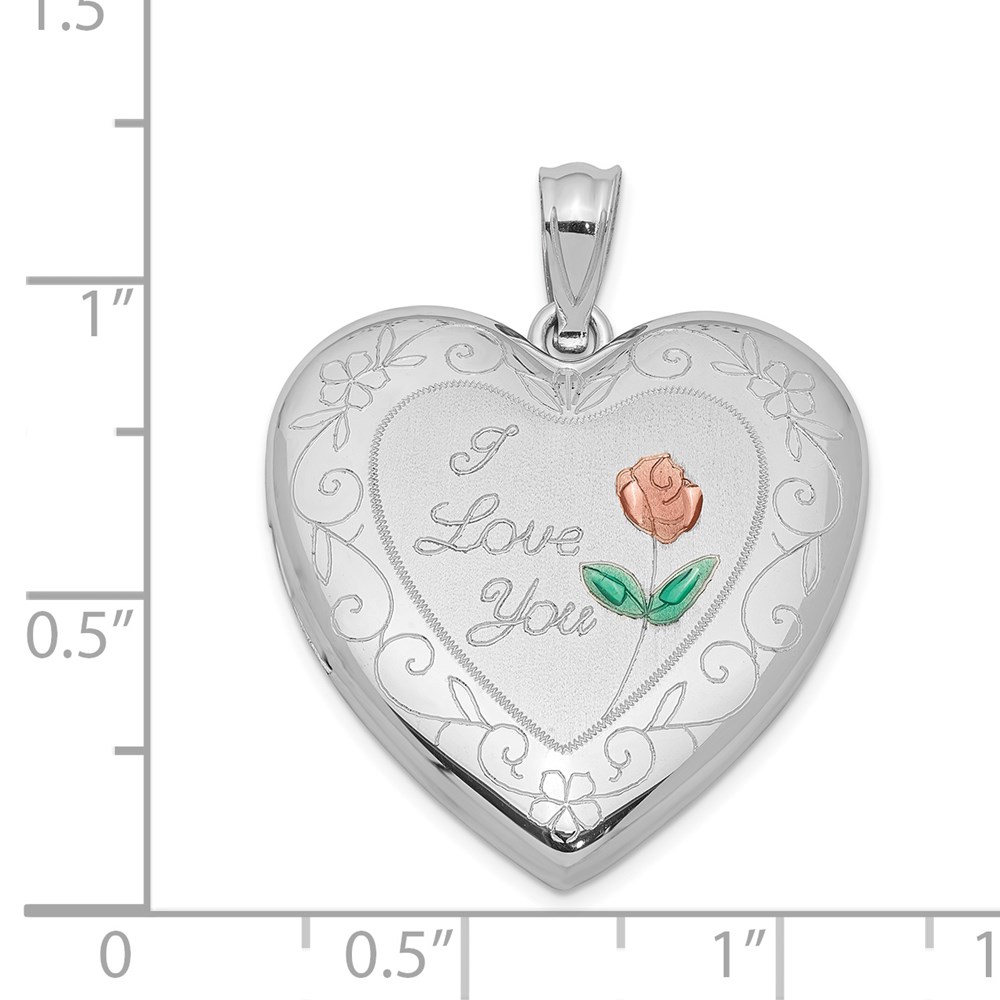 Sterling Silver Rhodium-plated 24mm Enameled Rose with Border Heart Locket