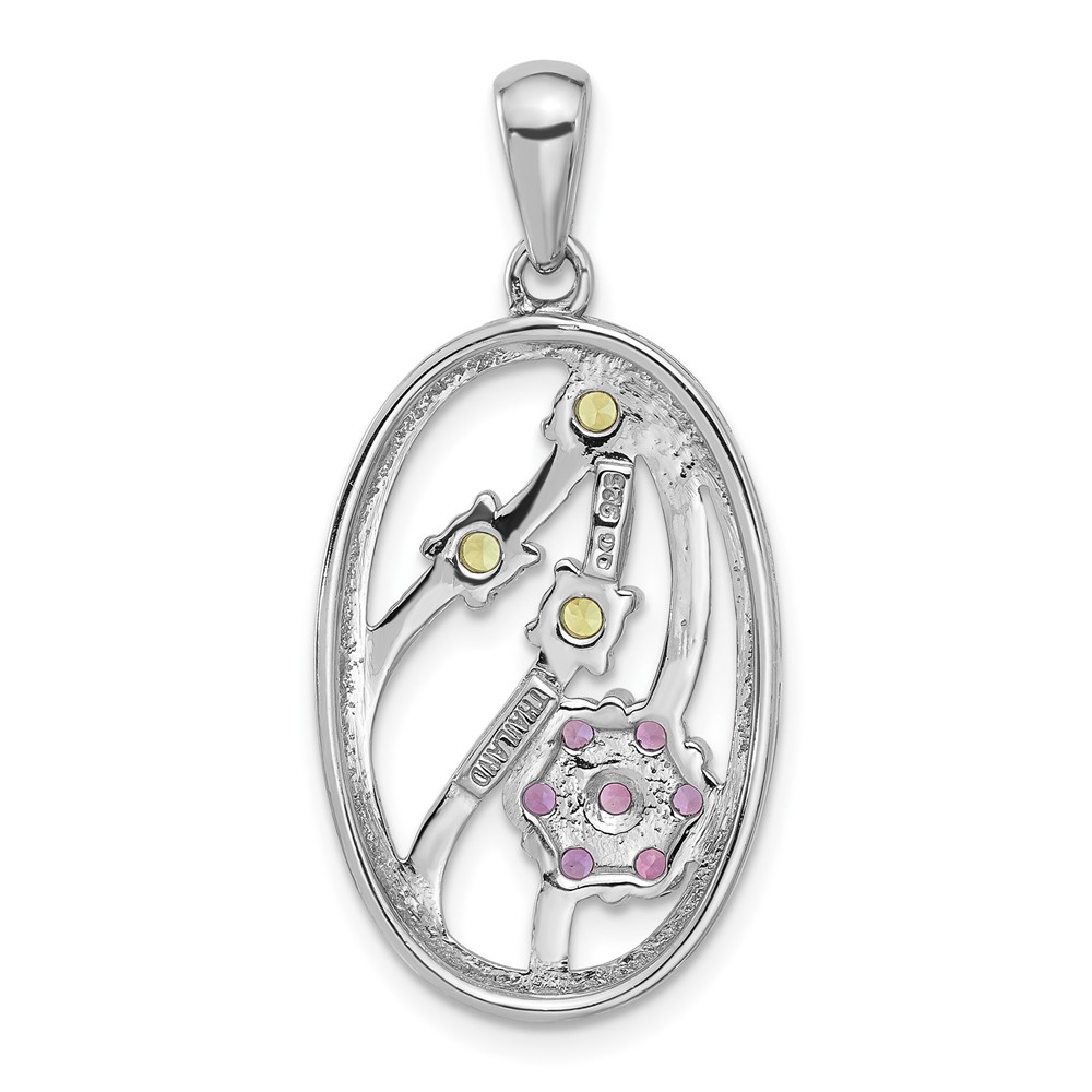 Sterling Silver Rhodium-plated Amethyst and Peridot Flower Pendant