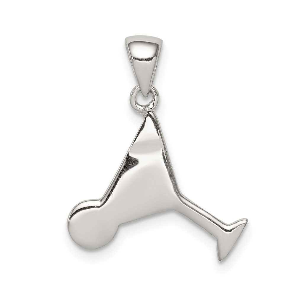 Sterling Silver Rhodium-plated and Hematite-plated Marcasite Red and Green Enameled Martini Pendant