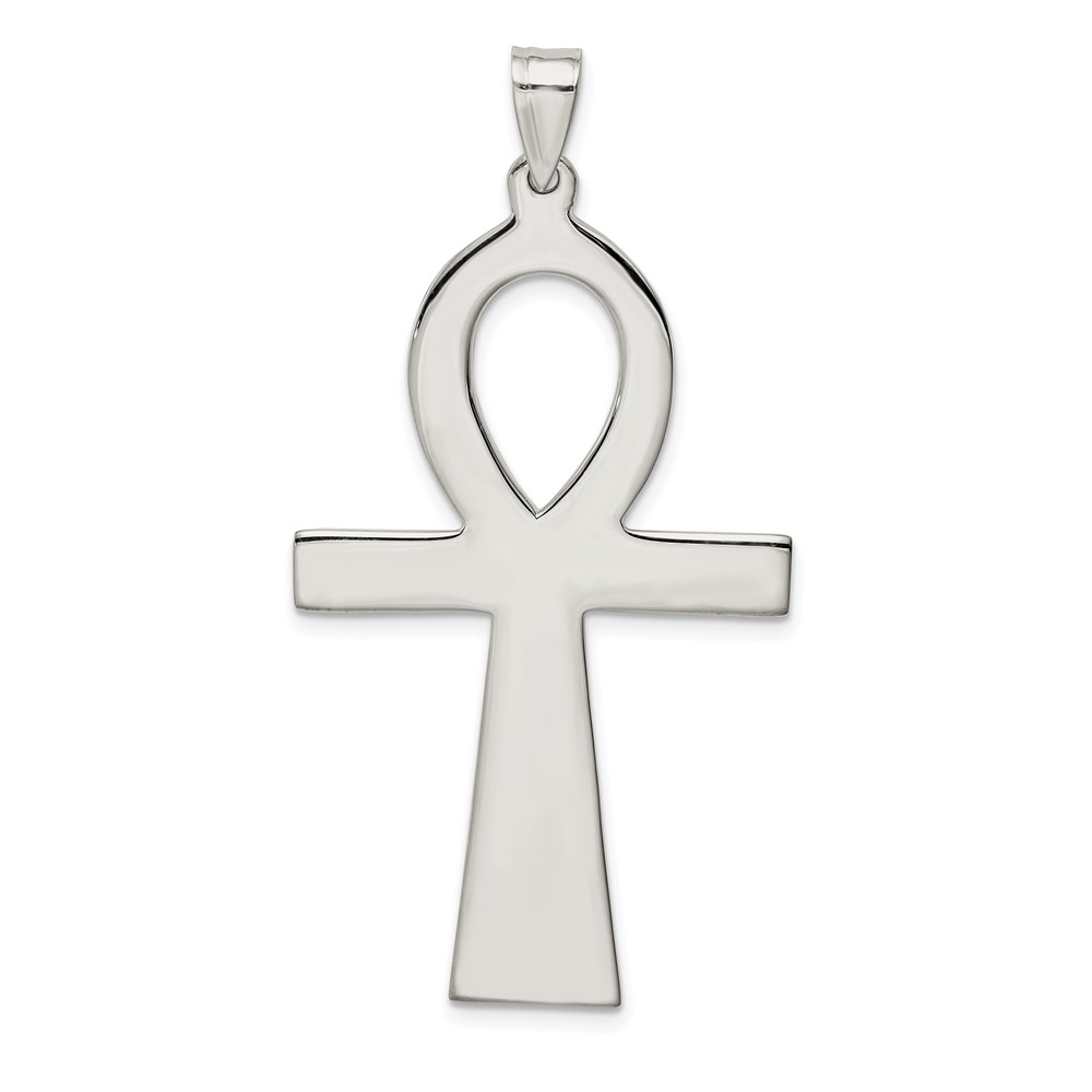 Sterling Silver Rhodium-plated Ankh Cross Pendant