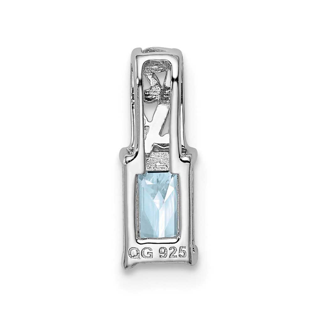 Sterling Silver Rhodium Plated Aquamarine Rectangle Pendant