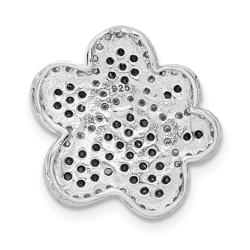 Sterling Silver Rhodium-plated Black/White CZ Paw Print Pendant