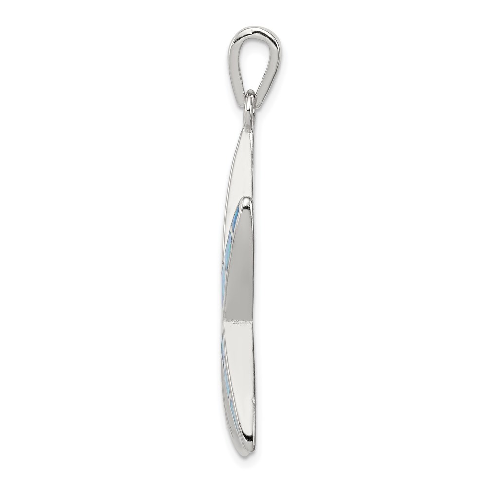 Sterling Silver Rhodium-plated Blue Inlay Created Opal Starfish Pendant