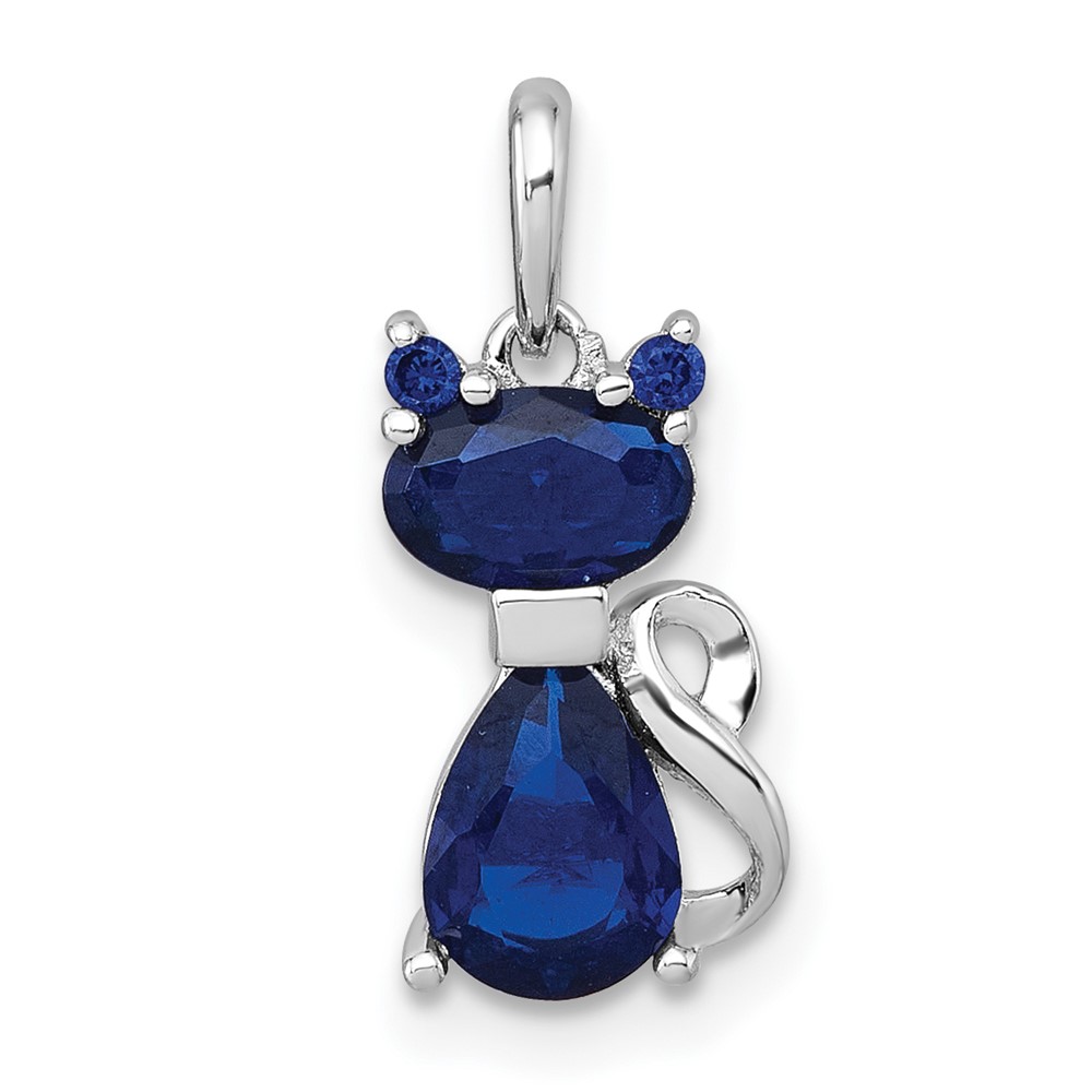 Sterling Silver Rhodium-plated Blue Lab Created Sapphire Cat Pendant