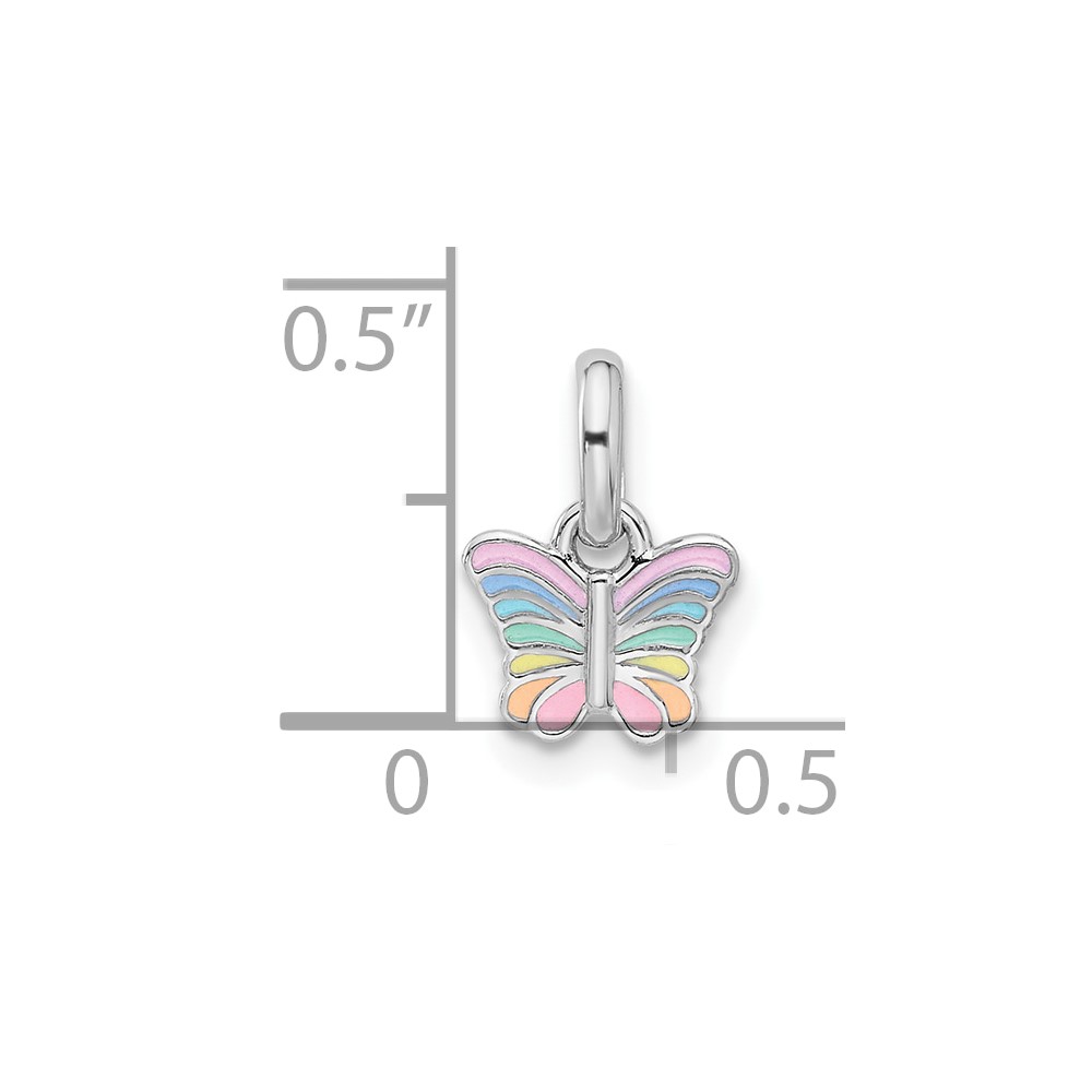 Sterling Silver Rhodium-plated Children’s Small Enamel Butterfly Pendant